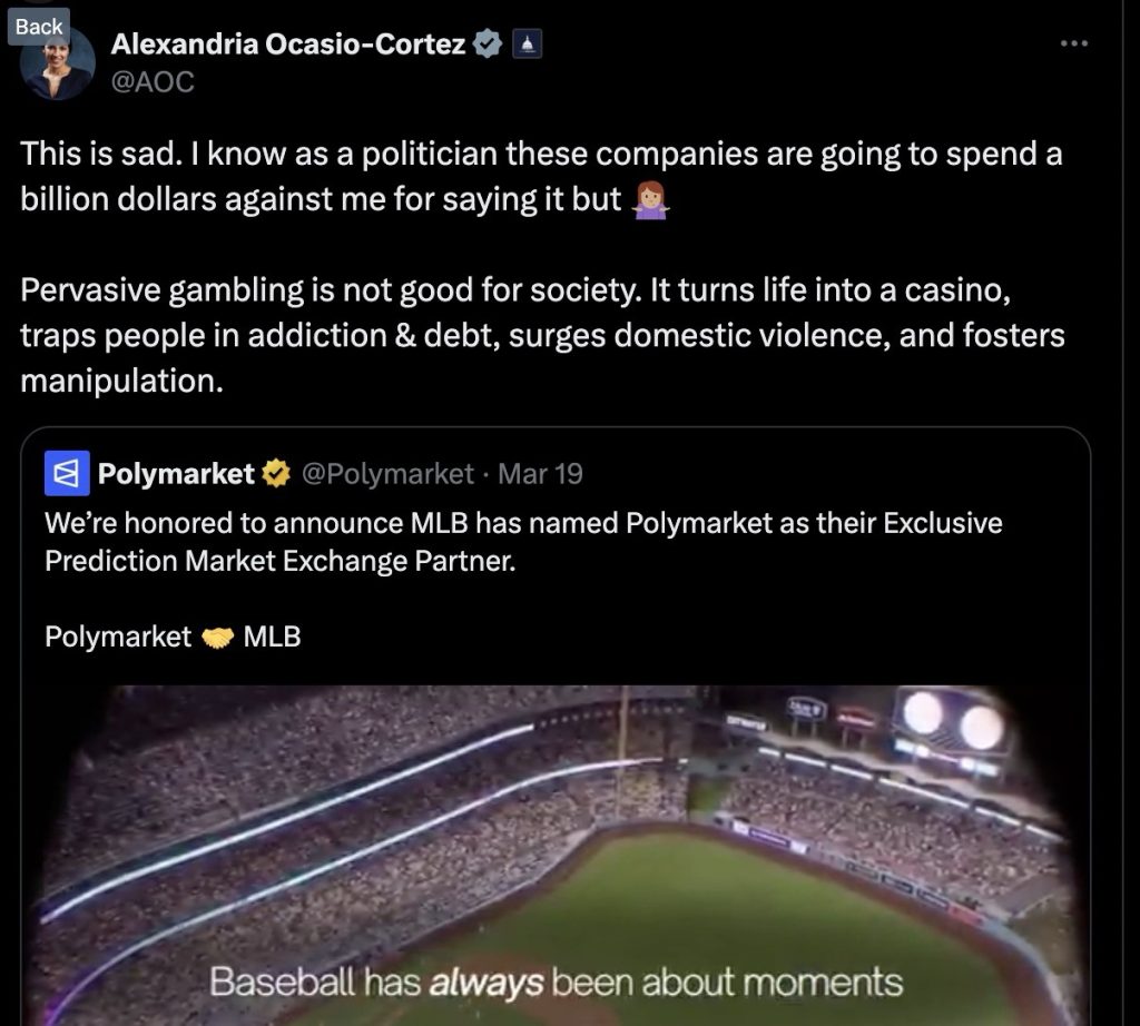 The deal between Major League Baseball and Polymarket has officially sparked a political firestorm. On March 20, 2026, Congresswoman Alexandria Ocasio-Cortez (AOC) took to social media to voice her strong opposition to the partnership, and her comments are already dominating the conversation around the league’s new direction.